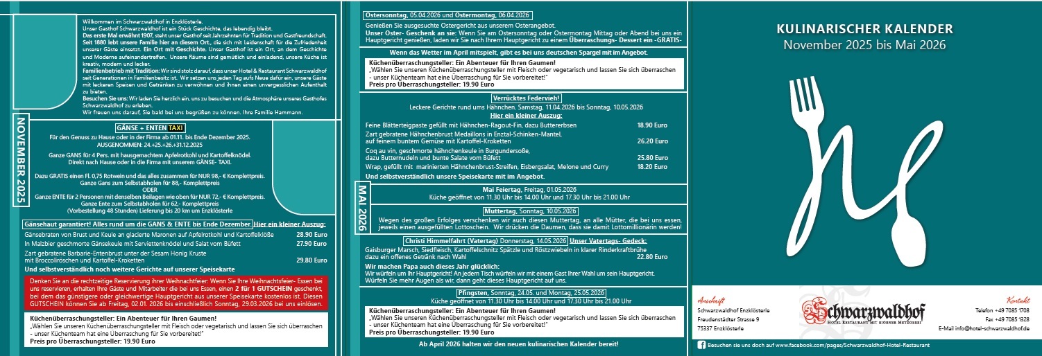 Ihr Restaurant in Enzlösterle für Feiern, Hochzeiten und a la carte mit seinen bekannten Orten